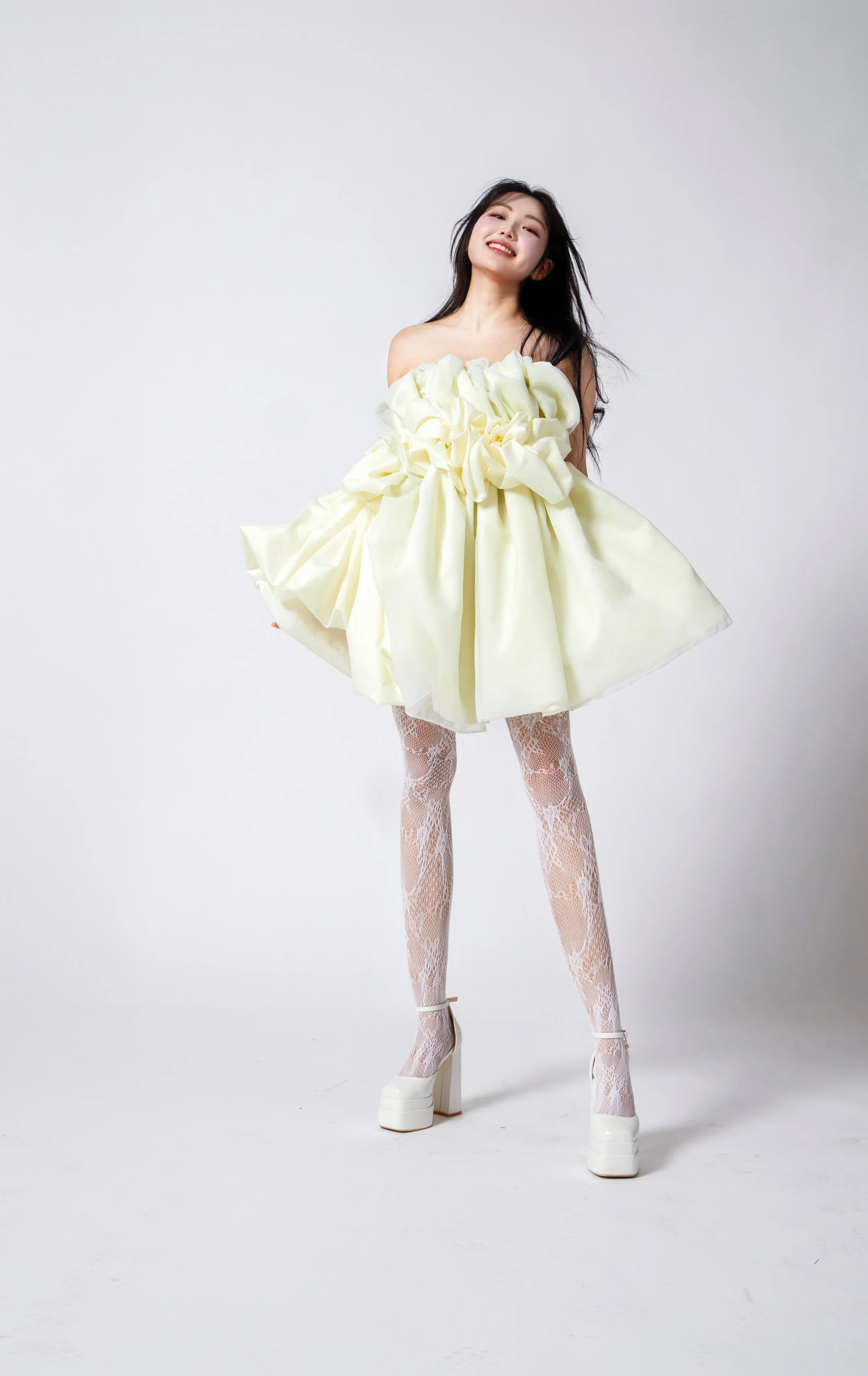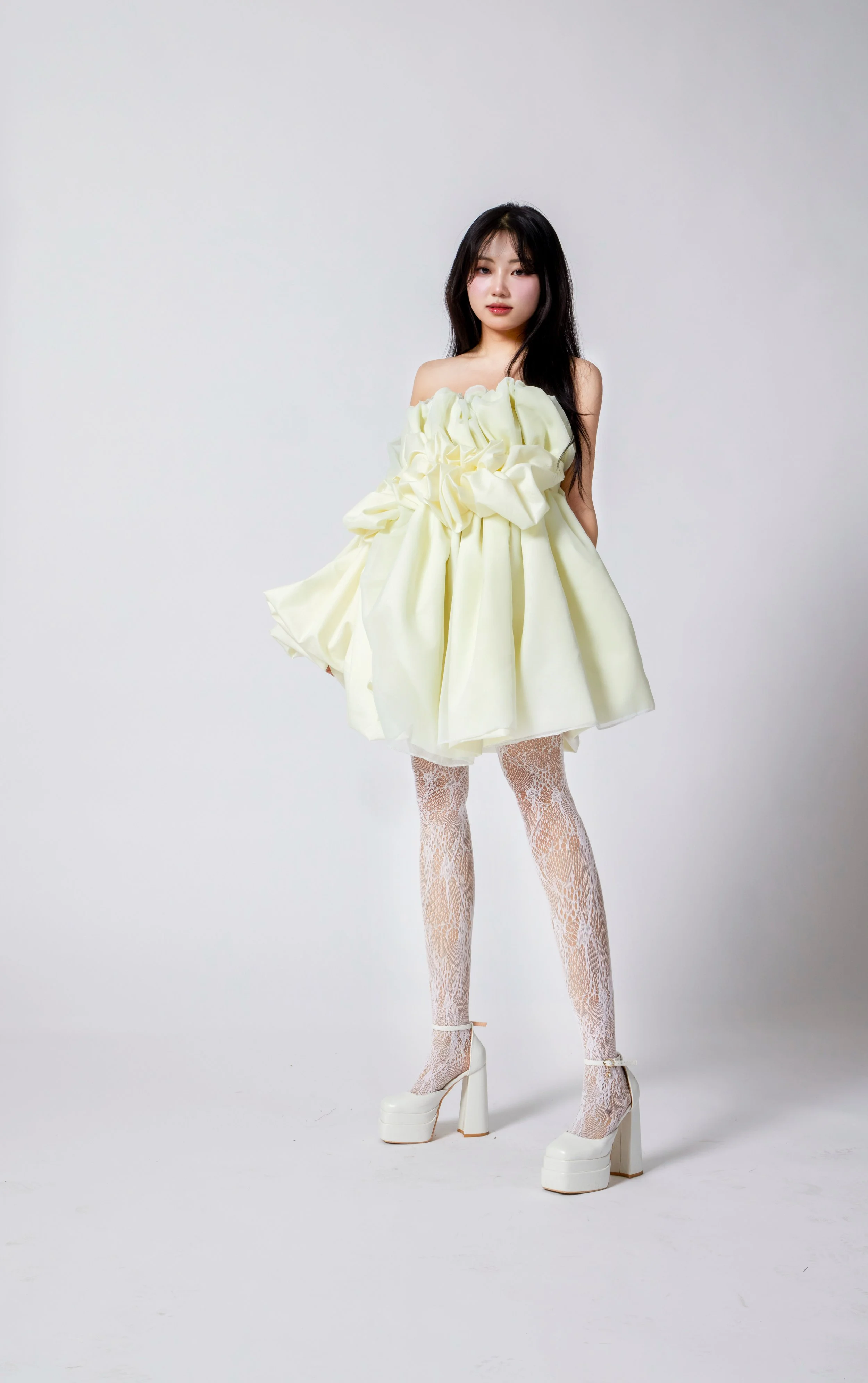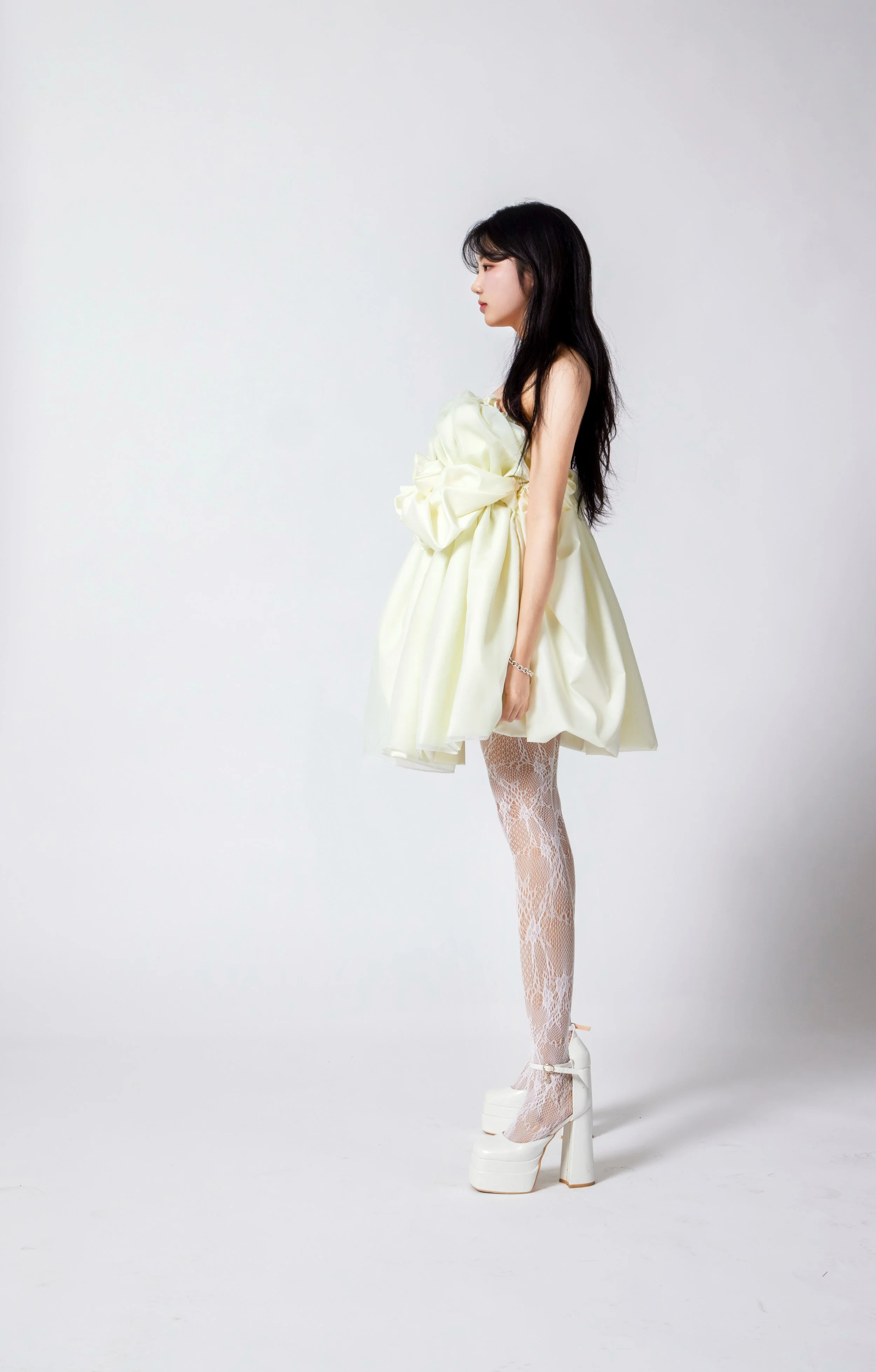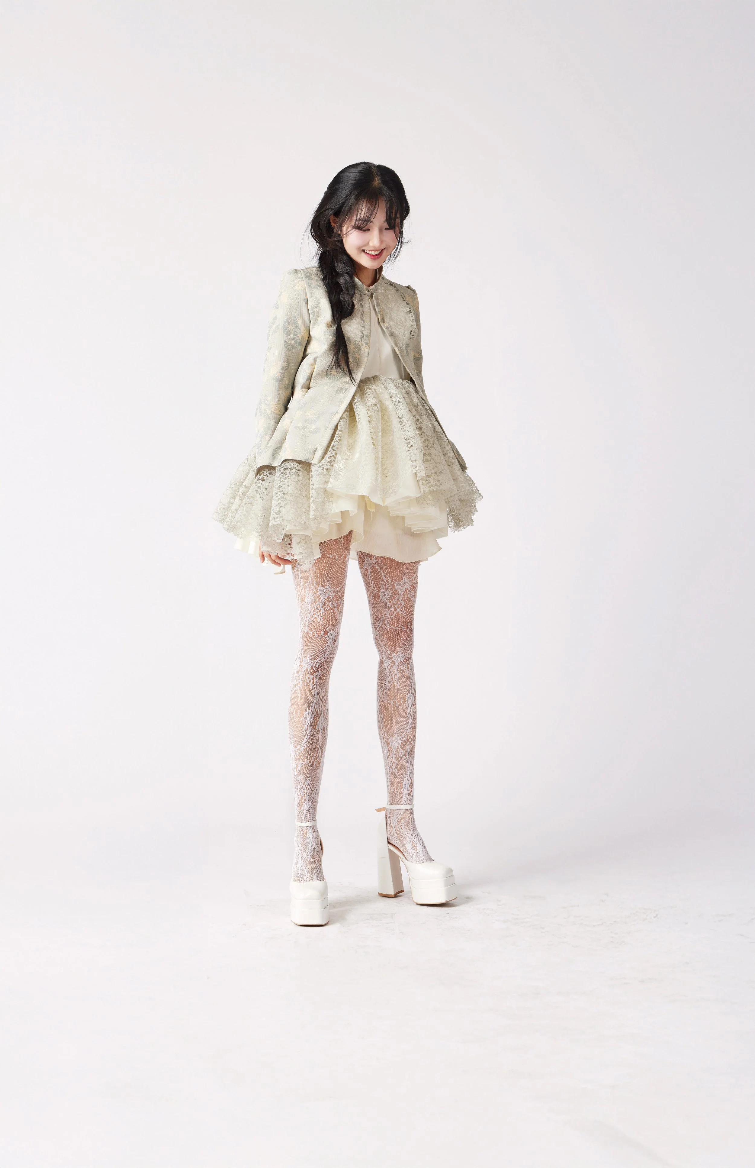 Silhouettes drift between worlds—neither fully anchored nor entirely free. They cocoon the body in layers of air and silence, with translucent fabrics like chiffon, tulle, and lace becoming veils of memory, mist, and emotion. Jacquard adds tactile echoes of the subconscious—rich, intricate, and impossible to decipher at a glance.