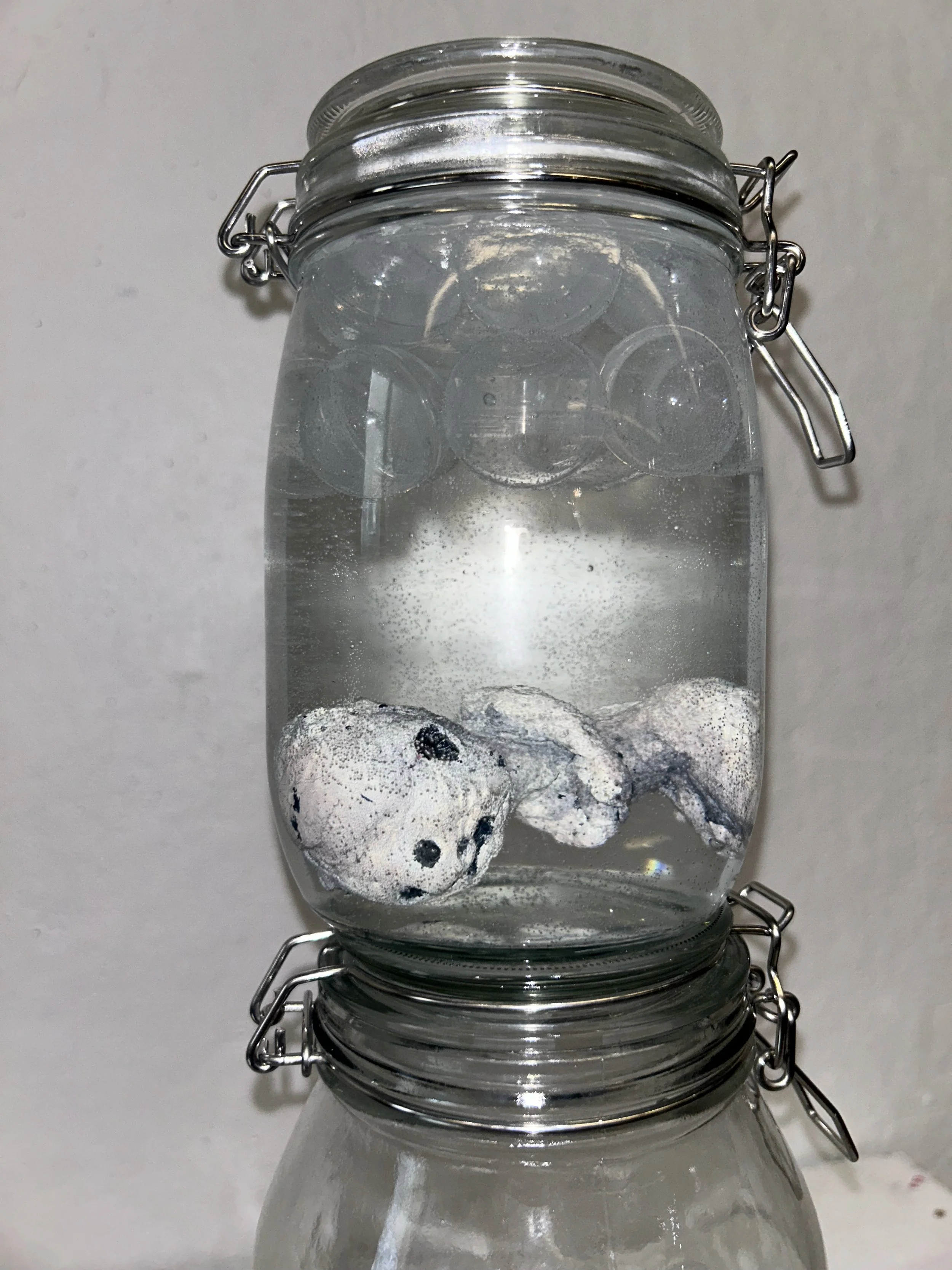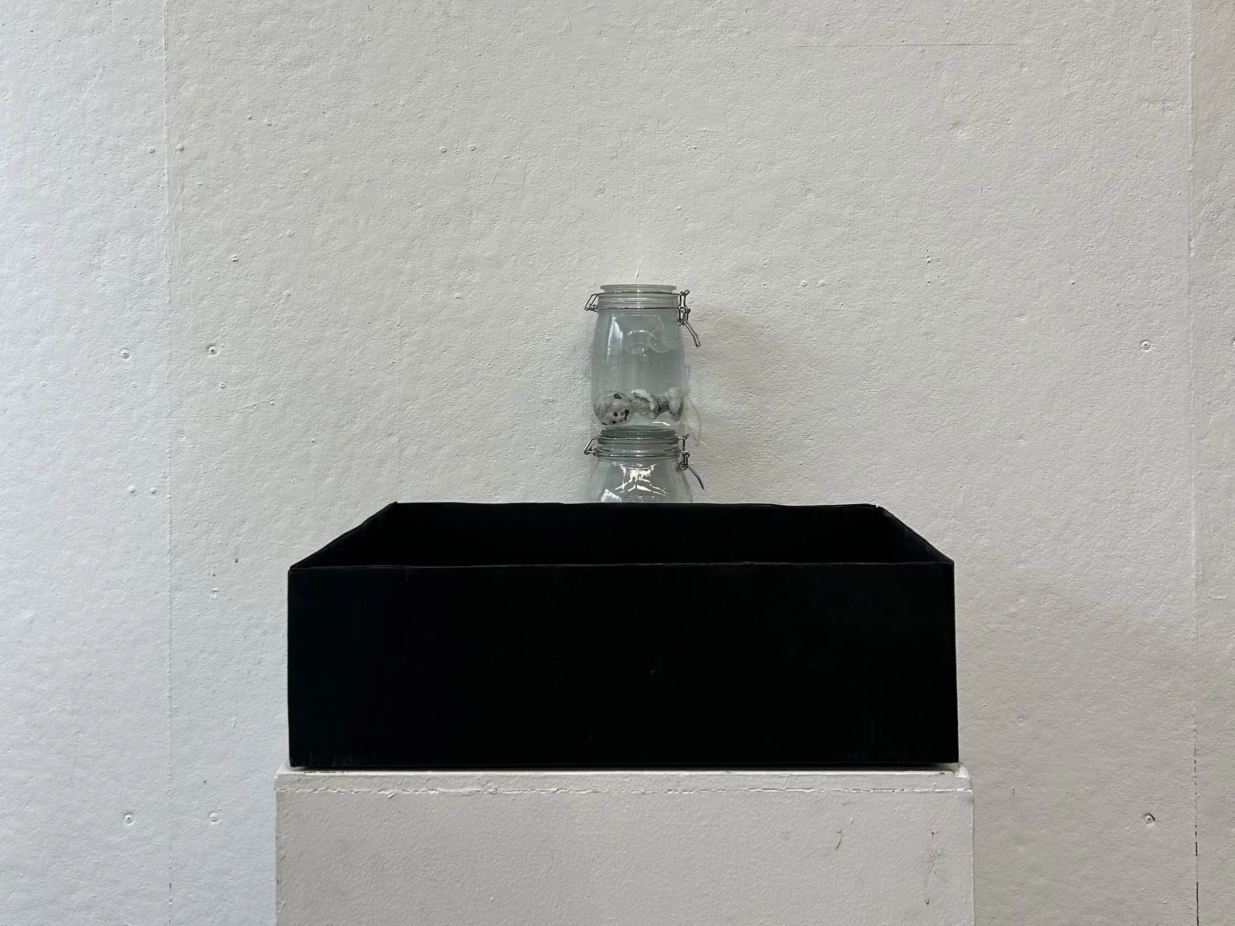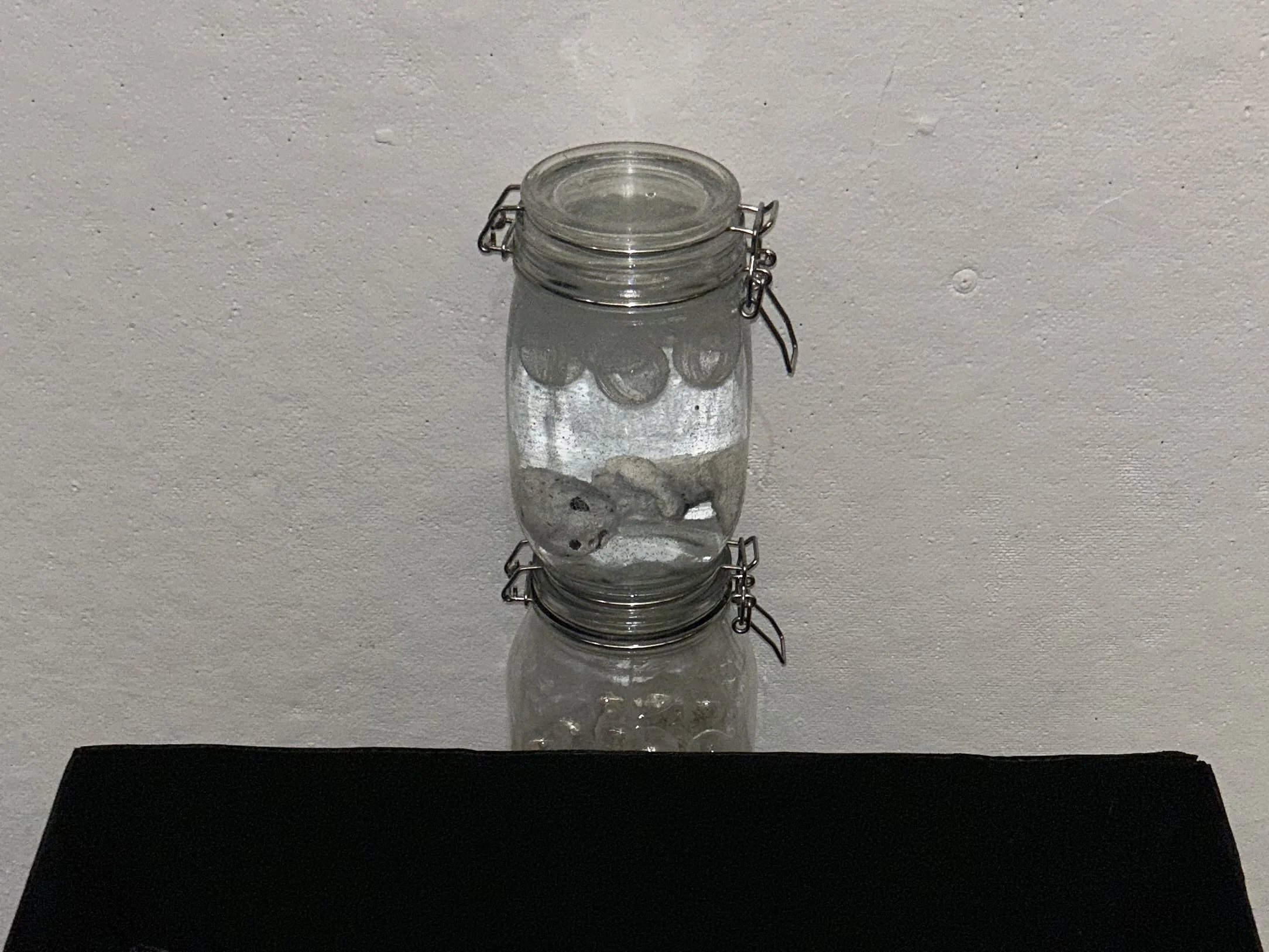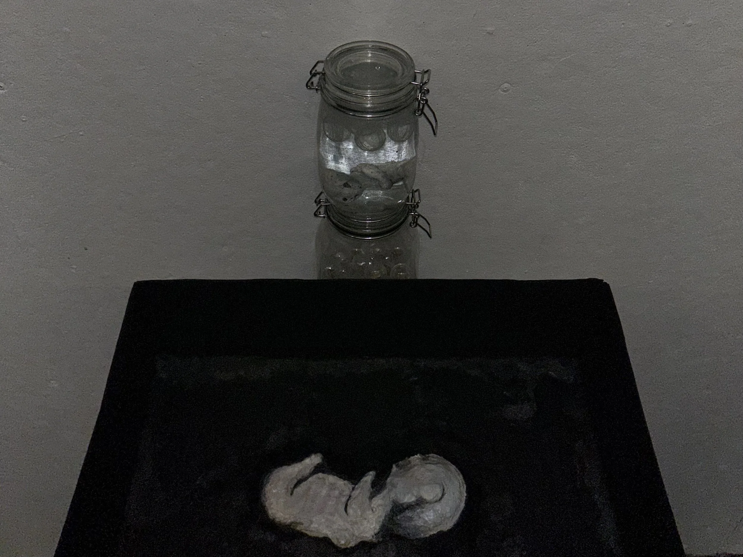 This installation is born from the haunting imagery and critical lens of Forces of Form: The Vrolik Museum by L. Kooijmans—a photographic exploration of malformed infants, preserved and displayed in glass jars.